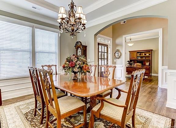 Stunning full brick w/stone accent home loaded w/upgrades & one of the best yards on street! 3car carriage style garage. Floor plan w/main level Office, formal dining w/moldings & trey ceiling, Great Rm w/coffered ceiling & stacked stone FP. Kitchen w/large island, stainless Electrolux app's w/5 burner gas cooktop & 2 wall convection ovens, Butler's Pantry. All custom lighting PLUS 5"plank distressed hardwds thru most main level. Main level Master w/large sitting + spa Bath! Sun Rm! Paver patio!
