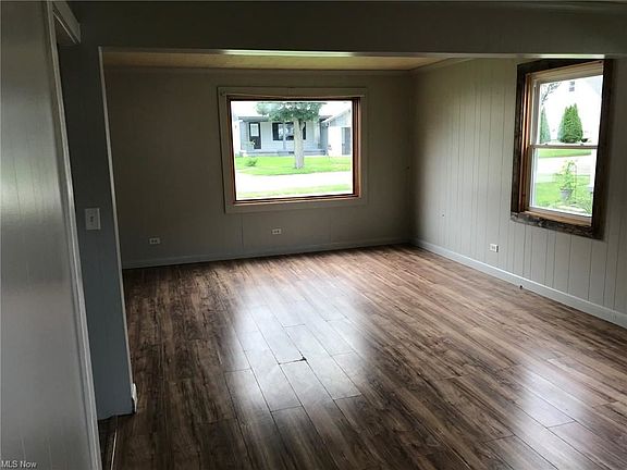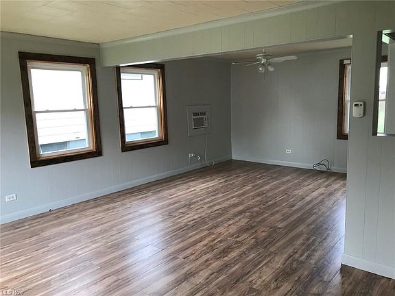 2 bedroom bungalow with large living room, eat-in kitchen - wall unit a/c, baseboard heat up plus hot water boiler heat. 2 car detached garage with covered patio.