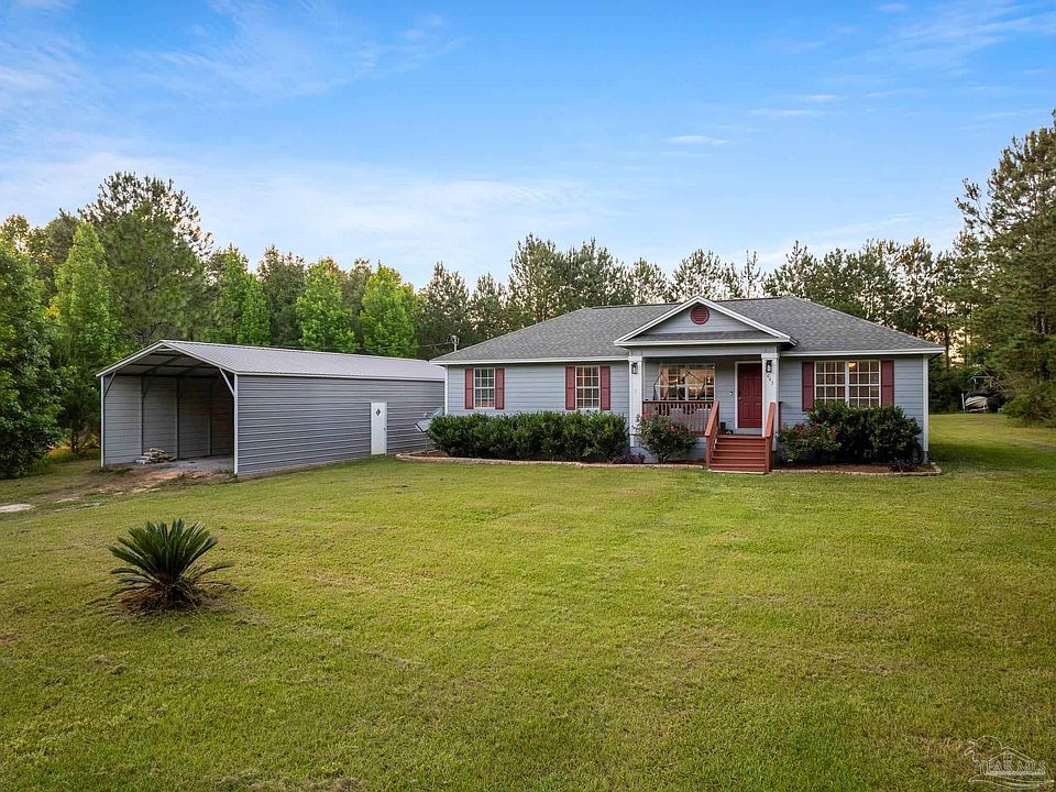 Nestled in the serene setting of Milton, Florida, this recently renovated 4-bedroom, 2-bathroom home offers the perfect blend of privacy and modern comfort on a sprawling 1-acre lot. With 1,379 square feet of living space, the home boasts a thoughtful layout and stylish updates from its 2021 renovation, ensuring a move-in ready experience. The expansive lot provides a tranquil retreat, surrounded by lush greenery, making it an ideal oasis for those seeking a peaceful lifestyle. In addition to the beautifully updated interior, the property includes a newly added 20x50 workshop, perfect for hobbies, storage, or a home business. Located just 20 minutes from Naval Air Station Whiting Field, this home offers convenient access for military personnel while maintaining a sense of seclusion. Whether you're enjoying the spacious outdoors or the comfort of your renovated home, this property provides a unique opportunity to experience the best of Milton living.