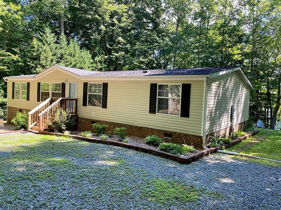 Lakefront Bargain Hunt ! This lakefront home has 1736 Sq.Ft. of living space with three bedrooms and two baths plus a large screened in waterfront back porch. Kitchen, Dining area and Family Room have water views. Hidden off the road in a quiet part of Kerr Lake in the Grassy Creek area. Over-sized Kitchen with multi level island opens into the dining area, Living Room and Family Room. Family Room with two bedrooms and a bath can be closed off with french doors. Master Suite has a walk in closet, Master bath was a double sink vanity, stand up shower and soaking tub. Wash/Utility Room has a large sink, room for storage and a doorway to the screened in Porch. Fire pit, swing, shade trees and dock with the water view make your back yard a true boaters oasis. This home is ready to be yours, it is truly move in ready, no repairs needed.