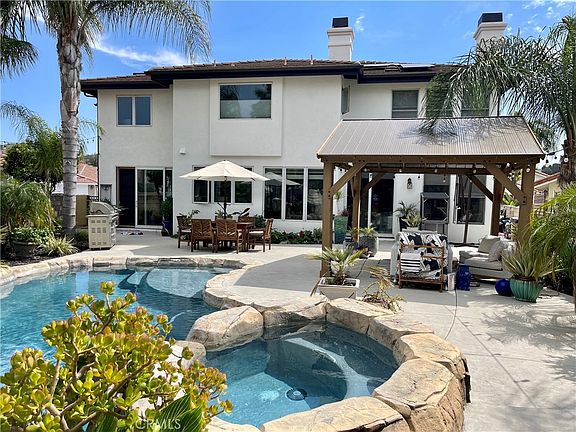 Exquisite property in prime location with a boat dock and incredible backyard. 20’ ceiling with many windows fill this house with light throughout the day. 3 fireplaces will keep you cozy during winter months. Backyard is like your own resort with a beautiful saltwater pool. Count stars and watch satellites while you lounge in your own spa. A beautiful pepper tree provides shade and a sanctuary for little birds. Many citrus trees fill the backyard with fragrance and produce fruit every year. Inside you will find a very well-designed home with 5 bedrooms plus an office and an upstairs family room (or 6th bedroom). There is a bedroom on the main floor with access to a full bathroom. Primary suite includes a huge bathroom and a private office. Gourmet kitchen provides ample custom built cabinets storage and a convenient island. LG Studio appliances will be appreciated by any cook. There is a built-in wine cooler and a pantry. Large windows overlook the backyard and pool area. Home has a quiet cool whole house fan and a Solar ($169/mo) for great energy savings! 40’ wide driveway and a 3car garage gives you plenty space for all the toys. This is a unique and a must see property located in beautiful Canyon Lake!