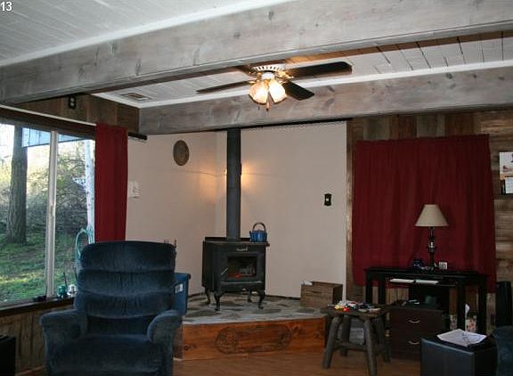 Very clean and comfortable 4 bedroom, 2 bath, 2 story on 4.42 fenced acres with barn. Gambrel roofed home, 14X24 detached garage with 2 car carport. Covered deck with hot tub overlooks well stocked fish pond. RV hookup on site. Wood stove in living room. Updated kitchen.