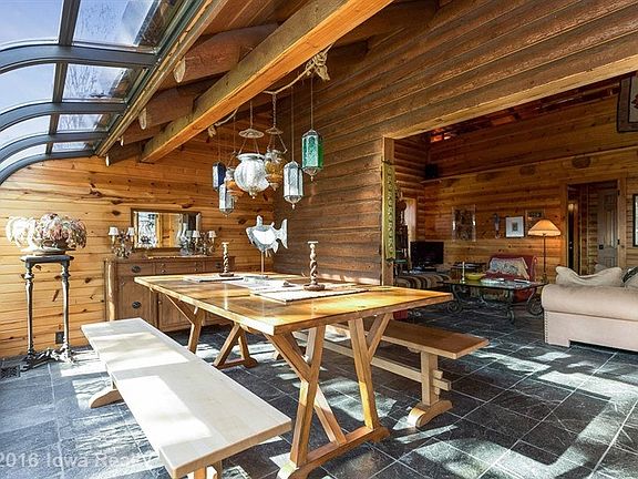 One of a kind property with stunning views of Dallas County and includes access to Raccoon River. Always dreamed of your very own log cabin in the woods? Here it is! Vaulted 2 story great room with massive stone fireplace. Kitchen has ample storage and granite countertops. Dining room with windows on 3 sides to take in all the nature and beauty. Main level bedroom/office with 1/2 bath. Large master suite is on 2nd floor, includes gorgeous 3/4 bathroom and tile shower. Finished walk out lower level with bedroom, full bathroom complete with jet tub/shower, office area or rec room, and addition room that would be great for crafts, toys, exercise, etc. Large deck that wraps around 1/2 of the house, large portion is screened with upgraded flooring. Updated appliances. In floor radiant heat. Several windows have been replaced. 50 year shake roof. Whole house Kohler generator. Oversized 2 car garage with screened in room off the back for extra entertaining or would make perfect potting area.