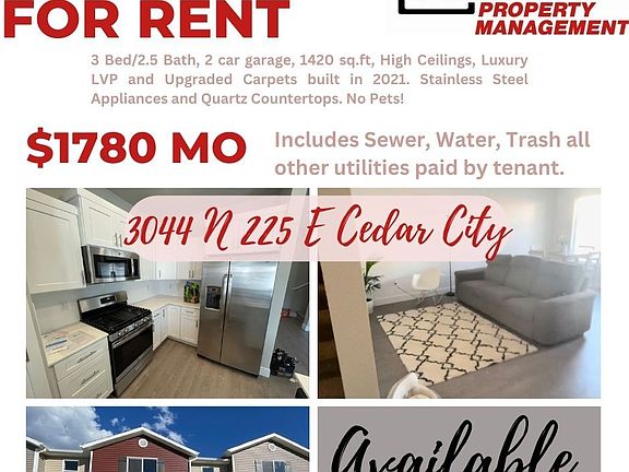 This 1420 square foot townhome home has 3 bedrooms and 2.5 bathrooms. This home is located at 3044 N 225 E, Cedar City, UT 84721.