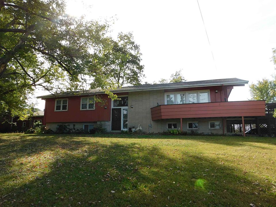 JUST REDUCED! This custom built 5bd/3ba limestone house is waiting for you to make it your home! This view is amazing! In the winter time when leaves are gone you can see all the way to Madison towers! Just over 6 acres with multiple large garages/pole barns for all of your tools and toys! The office downstairs has a built in desk/shelving! Wood stove in basement family room for an extra heat source! Kitchen appliances remain! Fireplace in upstairs living room! Call today for your showing!