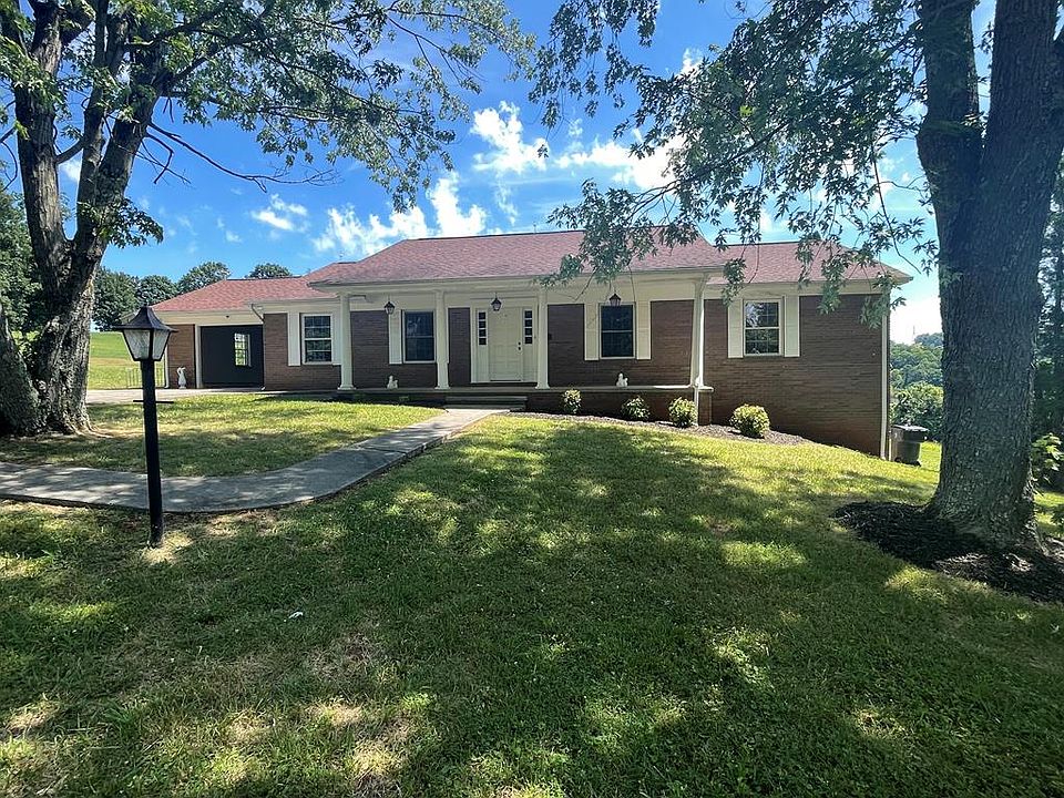 ****Seller has just completed remodel of lower living area with sheetrock, new flooring, and paint. Full brick ranch style home situated on 1.03+/-acres featuring 3 bedrooms, 2 full baths, new laminate flooring throughout, 2 fireplaces, new kitchen cabinetry and countertops, sunporch, lower level media room, new lighting and main level garage. All bedrooms are extra large with nice closet space. Plenty of outside space with beautiful countryside views.