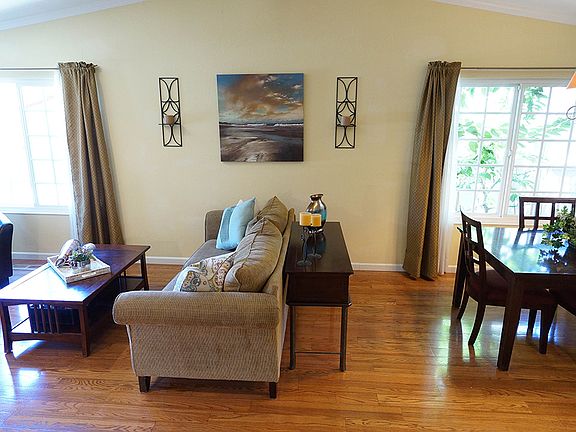 Enter to beautiful hardwood floors that flow throughout the open-concept floorplan. Features include a formal living/dining room combo, over 50 recessed lights, a brick family room fireplace, and full downstairs bedroom and bath. Master suite boasts same hardwood floors and private bathroom has a dual sink vanity with plenty of cabinet storage. Backyard is lush, secluded, and includes an amazing outdoor kitchen complete with sink, gas range, and mini fridge.