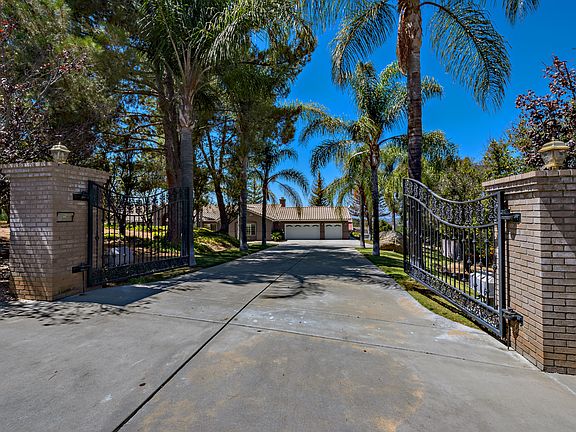 Combine business with pleasure and the comfort of an immaculately kept custom home on a 2.6 acre site with a massive detached 1,800 sq ft "neat as a pin" workshop! Gated single level 4 bd, 3 ba, 2,778 sq. ft. main house has office, solar heated pool, citrus grove, horse arena w/loafing shed and a second sweeping driveway to the workshop. Complete shop includes industrial compressor & dry blast machine, separate office space & storage room, tall roll-up doors. Contact Agent Connie Malkiewicz 760-497-2593.