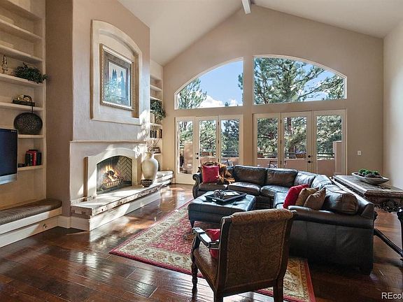 Nestled on a serene cul-de-sac in the coveted Ridge at Hiwan Subdivision, this ranch style home boasts main level living while enjoying sophisticated high-quality finishes and upgrades throughout. The open floor plan has a magnificent Great Room with floor-to-ceiling windows and a striking masonry wood-burning fireplace. The gourmet kitchen includes professional series appliances such as AGA gourmet range/oven boasting four separate ovens, Sub-Zero, and Bosche, all wrapped in gorgeous cabinetry and topped with slab granite countertops. The main-level master wing features an executives office with Comcast high-speed internet, a private retreat with a romantic double-sided gas fireplace, access to the deck and hot tub, and an exquisite five-piece bath with a jetted tub, large walk-in closet, and h/h sinks. The walk-out lower level Family Room features a beautiful stacked stone wood-burning fireplace, wet bar, and media room. Steeped in sunshine, the exterior has a hard coat stucco exterior, concrete tile roof, HOA approved and permitted dog run, and gorgeous professional landscaping with water feature and stone terraced walls. Located near community trails, Hiwan Golf Club, Elk Meadow Open Space Park, close to schools and offers an ideal I-70 commute to Denver and Skiing.