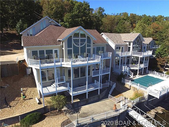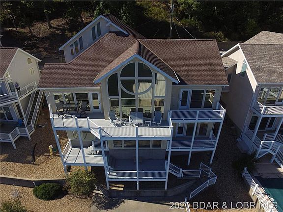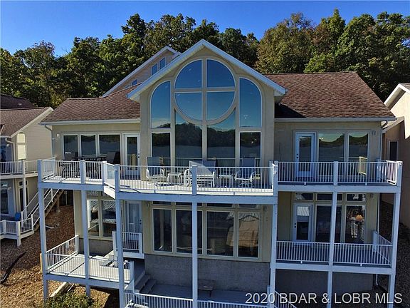 As soon as you walk into the home, your first thought will be WOW what a view. One of the most spectacular, wide open views on the Gravois Arm of the Lake of the Ozarks. Every room has a view of the lake and features all the comforts you expect. With four bedrooms and four full baths with additional half bath as well as the open floor plan, you have all you need to start enjoying life at the Lake of the Ozarks. Also has attached 2 car garage and concrete boat dock with a 32' slip. Easterly facing for the refreshing morning sunrise and shade in the afternoon. Make plans today to visit this home and make your dreams a reality. Most furniture and fixtures stay along with appliances. Did I mention the view? No matter what room you're in, there is the lake. Additional parking available next to garage on south side.