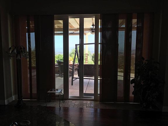 OPEN HOUSE 17 MARCH, 1-4 PM SECURITY DEPOSIT REQUIRED ON SIGNING LEASE Heavenly views at a down-to-earth price! A beautiful, tranquil escape from the busy-ness of the world! Large, beautiful, custom-built single-family home with three plate glass windows overlooking the mountains and valleys. This is a home like no other. It is situated 4 miles off the I-15 freeway, between San Diego and Temecula, with quick access to Vista and the coast. The three custom-designed outdoor patios include a panoramic private patio encompassing the entire back of the house, a side patio with an outside dining table, numerous chairs, an open fire pit, and a barbecue area. Included is another common patio, which we call the Mediterranean garden which faces the front south side with an 80 view. The large master bedroom, off the west-side of the house, has room for a king-size bed which will then face a two-sided gas fireplace that warms not only the bedroom but also provides the right ambiance for the large hot tub with pulsating jets in the master bath. The luxury doesn't stop there. There is also a custom walk-in closet (with Elfa organization drawers and racks), a walk-in shower, two sinks and a separate toilet room. Want to top off the night? Step out onto the private patio that offers breathtaking views beyond the private sliding glass doors off the master bedroom suite, one may even be able to see snow-capped mountains in the distance during the right time of the year. This one-of-a-kind home with alder wood floors throughout most of the house along with travertine tile in working areas and kitchen, offers an additional bonus room , a half-bath powder room, a large great room with three distinct spaces, which include a crafting room, a living room with a wood-burning fireplace and a viewing room to take in the breathtaking skyscape. The custom-built kitchen is a chef's delight, which includes a separate island with its own sink, and a separate mini bar, all with granite countertops and backsplashes. There is also a separate walk-in pantry within reach that houses additional food items and dry goods and large kitchen appliances. Semi-furnished, if desired (spaces are large) If the bedroom is not used by another member of the house, do you have guests who want to stay overnight? Why put them in a hotel when they can listen to the water fountain just beyond their picturesque bedroom window? They can sleep in comfort in the large bedroom off the east-side hallway, which has its own private bath, walk-in shower, and floor-to-ceiling alder wood cabinetry. There is plenty of parking in the expansive driveway. However, this rental also includes access to garage parking and storage. The garage has hookups for a washer and dryer. There is plenty of open land, and there are no "containing" fences, so it is suggested that your pets be leashed. There is a small apartment on the backside of the house, which is occupied by the property manager, who takes care of any issues regarding the house and the common grounds. They have their own private entrance and their own space that does not encroach on your private area. They have access to the outdoor dining area near the round cement table in the barbecue area and the large, shared patio, which overlooks the view. They will not use the private patio, which runs the entire back (view side) of the house, which is your private domain. There is a gardening shed, also available to gardener, a raised garden to plant your own vegetables, and a large tool shed, usage to be negotiated. 2 large bedrooms both with walk in closets, separated from each other, with the great rooms and chef's kitchen in-between. There is a bonus room which is presently used for a TV room and office, however can be made into a child's bedroom. Essentially, it is only 2 bedroom house with a bonus room. 2.5 bathrooms 3 patios 1.0 car garage Wi-Fi is wired via individual room plugs, including over the fireplace for a possible TV, throughout the house. 30-solar panels (virtually no/low electricity costs, based on your usage) Paid gardener to manage the 2 acres, twice a month $50 paid monthly BY OWNER directly to water company to care for landscaping 4 miles from the freeway (halfway point between Riverside and San Diego. ONE-YEAR LEASE MINIMUM. $3500 deposit, along with $3500 first month rent, due upon signing the lease agreement. NO LARGE ANIMALS, OTHER THAN AS LISTED Additional Open House viewings to be announced for April. PLUS cut your commute way down if you drive down to San Diego County from Riverside County. 30 solar panels bring the cost of electricity down considerably, based on your usage. EDCO garbage ($50/month) Water (owner will pay $50 directly to water company monthly) Propane, based on your usage