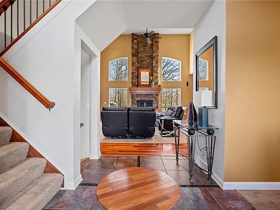 Beautiful custom built home! As you enter through the 2 story stone portico to the entry foyer you will notice all of the details; inlay tile and African kempas floors. Ahead is the two story stone fireplace in the great room, to the left a private office with cathedral ceiling and custom windows, to the right the formal dining with wine bar, open concept kitchen has 10â ceilings, rear breakfast room with doors to rear composite deck. First floor laundry, half bath and amazing owners suite complete the first floor. Second floor open walkway with wrought iron railings leads to two large bedrooms, full bath and bonus room currently used as a theater room. In the lower level there is a full kitchen/work area, full bath has everything needed to be complete, storage areas and additional entry from the 3 car garage.