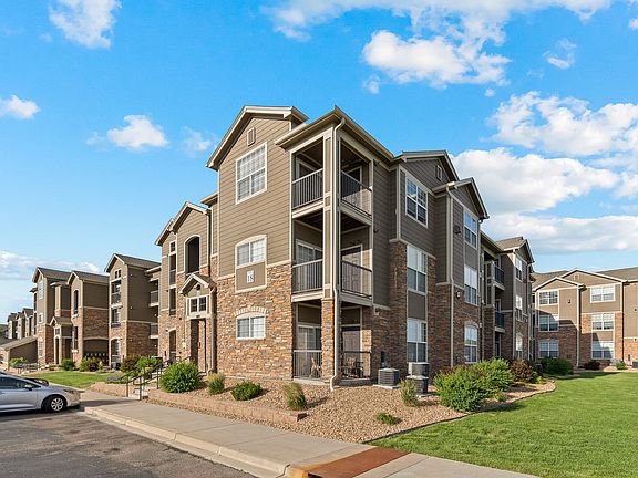 Fantastic Condo in Erie on Highway 7 just a short drive to Boulder, Broomfield, Erie, and Longmont. This condo has a wide open concept, and a ton of square footage for a two-bed, two bath condo. Natural light pours in from the large south facing windows. This turn-key condo boasts two balconies, a dedicated laundry room, en-suite master bath with a walk-in closet, and plenty of storage space. The main living space is large with an Open Concept living room and dining space off the large wide open Kitchen with granite counters, solid wood cabinets, and views for days! There are breathtaking unobstructed Mountain views from just about every space in this home. Enjoy the Sunset each and every evening as the sun goes down over the Rocky Mountains. This condo has been meticulously maintained and needs no improvements. The parking lot is oversized and dedicated to this community with more spaces than cars, there is always plenty of parking for residents as well as guests.