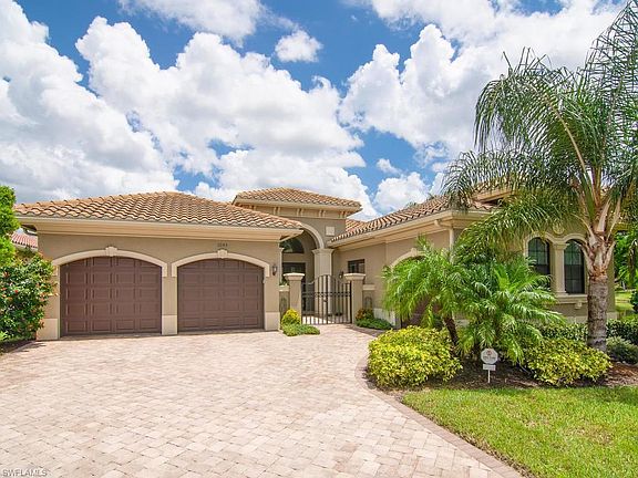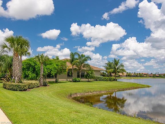 STUNNING 5 year new ONE LEVEL CARLYSLE MODEL loaded with upgrades. One of the BEST PREMIUM LOTS in Riverstone with LAKEFRONT on two sides! Lovely open great room plan featuring 3 BR's plus huge bonus room for study/den or add a closet for a 4th BR, 31/2 baths, and 3 car garage. Fabulous chef's kitchen with center island has polished chrome ship light and informal dining. Entertain in the formal dining room with adjacent wet bar. Beautiful wood look ceramic tile flooring in main living areas. Great room with coastal built in entertainment center. Plantation shutters throughout + built in safe. Outdoor spa plus room for a pool (plan and survey in supplements). Rare in Naples, this home has an underground 250 gallon propane tank for the spa, outdoor grill, future pool and kitchen cooktop. Riverstone features a resort style pool and relaxing whirlpool plus a lap pool, 5 lighted tennis courts, basketball and pickleball courts, state of the art fitness center, children's open play area and water play area with wading pool, arts and crafts room, aerobics room, game room, social room with catering kitchen and covered party pavilion. Quarterly HOA will be $1200 Jan 1, 2020.