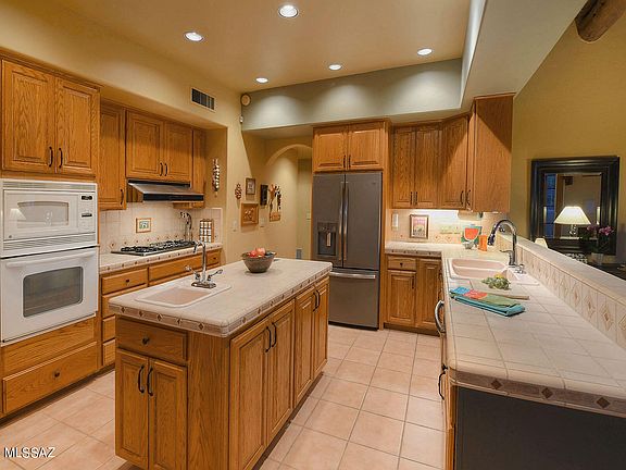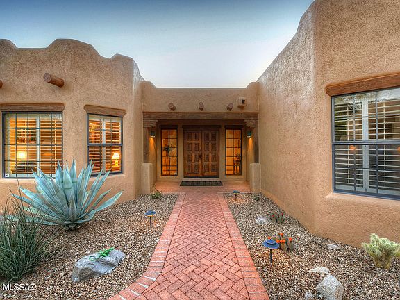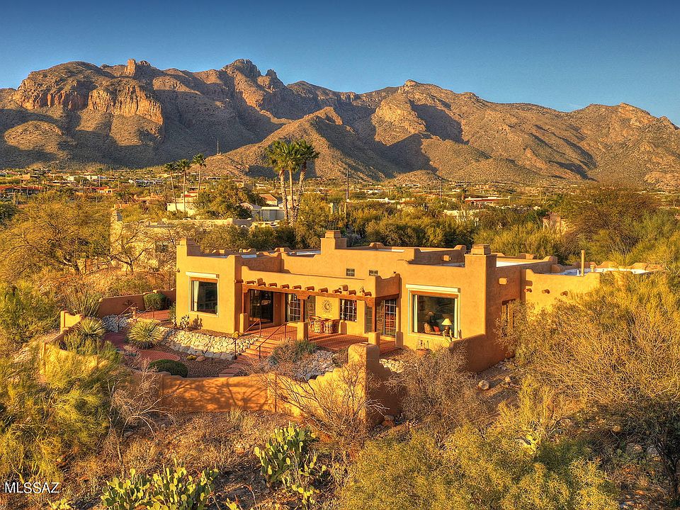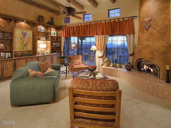 * This Beautiful Santa Fe Home Reflects Southwestern Living at its Finest. Nestled on a Quiet Cul-de-Sac in the Catalina Foothills w/Magnificent Mountain, Sunset & City Light Views! Interior Features High Ceilings w/Viga Beams, Custom Alder Bookcases, Rich Paint Colors, Rustic Dark Wood Lintel Accents & 3 Fireplaces w/Tiled Banco Seating. Gas Cooktop in Kitchen, Center Island w/Prep Sink & Warming Drawer, & Cozy Breakfast Nook. Master Suite has 2 Walk-in Closets, Large Bathroom w/Additional Built-in Space Heater, Jetted Tub, Separate Shower & Dual Vanities. 2-Car Garage w/Cabinets & Storage Room. Front Entry Courtyard & Several Patios in Back Encourage Outdoor Leisure Activities, Enjoyment of Desert Wildlife, Phenomenal Views & Breathtaking Arizona Sunsets. Most Furniture is Available Too!