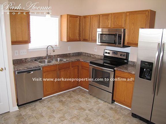 This cute ranch with brick accents and a 2-car garage has a bright, open split bedroom floor plan. The entry with wood laminate floors opens to the family room with a fireplace, vaulted ceilings and a plant shelf. The living area flows into the sunny breakfast area and the kitchen with a pantry and stainless steel appliances. The master suite includes a walk-in closet and a private bath. This home has lots of storage throughout, including a laundry room. Enjoy the outdoors on the spacious rear patio! Pets conditional, including $500 pet deposit that covers up to 2 pets.