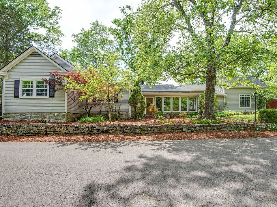 Located in the heart & soul of Williamson County w/unparalleled charm this lovely home storied in history is situated on a large 1.90 private acres bordered by preserved land. Additionally included is an 1800s Cabin w/fireplace made of rocks from the Harpeth River, stairs hewn from giant cedar trees & a loft. One level Main home features spacious living rm w/wood burning fireplace, custom built ins thru-out, delightful primary bedroom w/full bath & added spacious bonus rm w/vaulted ceiling. Enjoy views of the outdoors in the sunroom or sip tea on the covered front porch or back patio. Imagine the possibilities of the stunning landscape from gardening, chickens, play & more. Conveniently located w/equal distance to Green Hills, Brentwood & Franklin shops & dining. No HOA & priced to sell!
