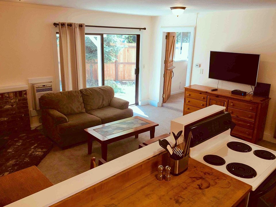 3045 Myrtledale, Calistoga Quietly Private Two-Bedroom Cottage. - Fully or partially Furnished, with private enclosed courtyard. - Open Living and Kitchen areas, with flat-screen TV, iron-pot fireplace, and a fully-equipped Kitchen (inc. dishwasher). - Base Rent per month plus Utility Fee (covers all utilities, plus internet-streamingTV & washer/dryer). - Small Pets OK with approval. - Available anytime, for any length Term over 30 days, but a maximum of 9 months. - Located out Grant Street (the street becomes Myrtledale) on the picturesque Napa River, just under a mile from downtown Calistoga: the perfect "country escape" with in-town convenience. Call me... Thanks, Ron Hartman, Sotheby's Int'l. Realty, Cal-DRE #01128106 Monthly rent plus Utility Fee (covers all utilities, plus internet, streaming-TV,); coin-operated washer/dryer; no parking. Utility Fee varies depending on number of occupants.