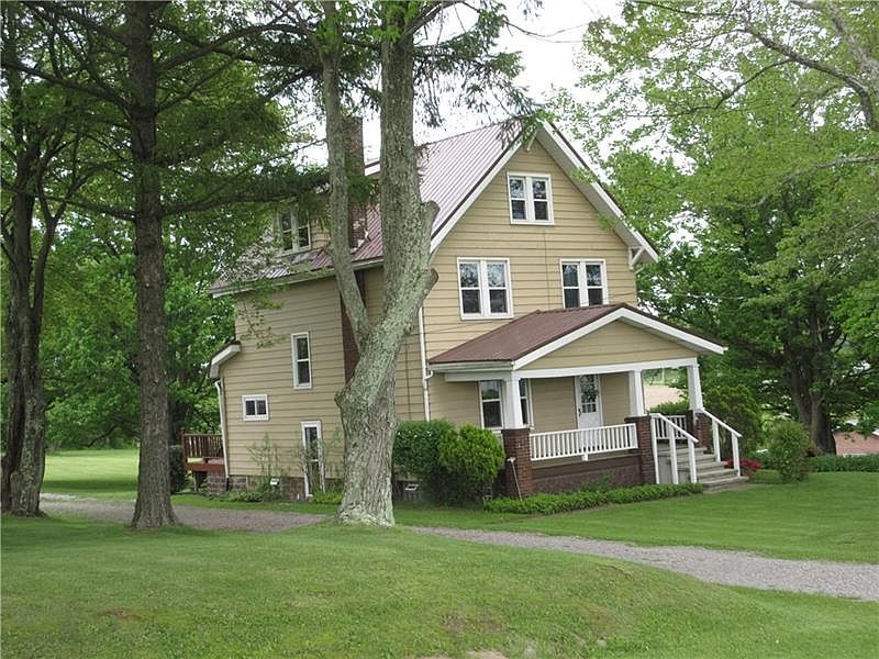 What a find! 1930 farmhouse remodeled and updated and ready for new owner. 2.5 acres of yard and many varieties of trees including sycamore in front and huge maple off the back deck. The large attic room had been a 4th bedroom. Modern kitchen includes oven and refrigerator. Living room has 1 paneled wall with recessed lighting at decorative fireplace, dining room has parkay floors and french doors to deck. Home is very well insulated, has metal roof. The owners had a horse and the garage had a shelter off the back and used the garage for hay and feed. Garage has metal roof. Property surveyed.