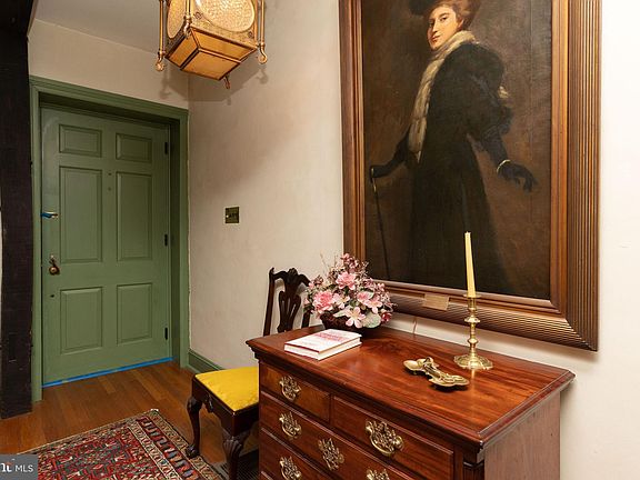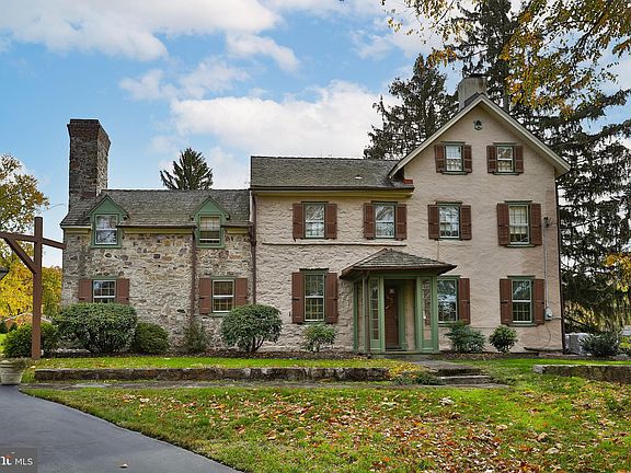 Historic Tall Timbers Farm is a very special, one of a kind property! Situated on 2.7 acres of professionally landscaped grounds, the stone Farmhouse, circa 1783, has been tastefully upgraded and expanded over the years, while still maintaining its authenticity. As you enter the lovingly maintained main house, the architectural detail is immediately evident. The traditional living room with wonderful hardwood floors, features a wood burning fireplace, deep window sills, and exposed wood beams. A gracious formal dining room leads to the eat-in kitchen. The library with the warmth of a fireplace and family room, are perfect for time with family or friends. Completing this level are a convenient laundry/mudroom and powder room. Five ample sized bedrooms, including primary suite, den and three full baths, are situated on the upper levels. The 19th century stone barn offers 5 stalls with exterior doors, tack room, hay lofts and separate electricity. Attached to the barn, is a 3 car garage with plentiful storage and a bright, full height loft, great for an office or rec room. An additional detached garage, with electricity and built-in shelving, provides space for parking and storage. The original milk house, with newer roof and electric, could be used as a storage shed or workshop. Fabulous grounds are highlighted by a custom built, screened in gazebo, with Trex floor, ceiling fan and newer roof, situated on a large brick patio. Modern upgrades include 2 zoned central air conditioning, 200 amp electrical service, updated in 2022, and a whole house Generac generator. Too many wonderful details to note. A must see!