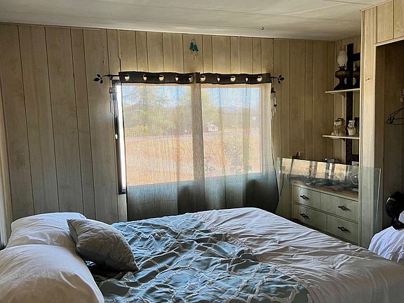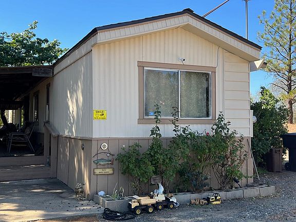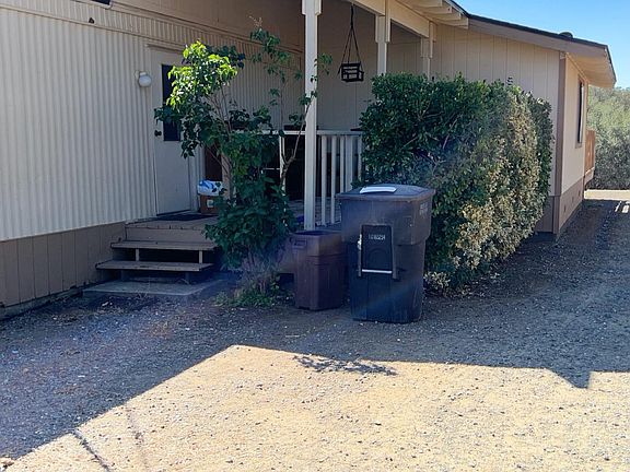 This is a great property, with POTENTIAL FOR HORSES, The home sits on a beautiful 2.2 acres, with level land at the street leading gradually down towards the seasonal creek at the back. The back area around the creek is heavily treed. There is a common equestrian easement that runs along the rear property line. Perfect property for horse enthusiasts . The home is an original single wide with an addition to the living room with high ceilings and a large closet. There are two bedrooms, one at the front of the home with a Jack and Jill full bathroom open to the hall. The other bedroom would be the master, at the back of the home, with a nice closet and bathroom with a shower. The laundry room is off the kitchen with an exterior access door. The great room has kitchen with plenty of cabinets, dining room and with the addition a large living area, with a glass slider leading to the porch. The front entrance is on the left side of the home, with a large wooden deck. The Back of the property has a garage used as a shop, with a carport attached to it, a large container and a large free standing carport near the container. The container and carport are included or at the buyers request, seller will remove. There is a large amount of personal property inside and outside at this time which will be removed by owner before close of escrow. Come and see this unique property.