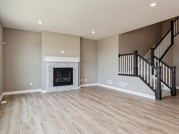Welcome to Reserve at Autumn Woods, Chaska’s newest community, where highly desirable homesites meet exceptional design. The stunning Washburn floor plan offers an open-concept main level with a grand staircase, a gourmet kitchen featuring quartz countertops, a stylish backsplash, white cabinetry, a spacious island, and a striking gas stone fireplace in the great room. A separate formal dining room and a main-floor office with elegant French doors provide both functionality and privacy, while a convenient ¾ bathroom adds flexibility. Upstairs, the luxurious primary suite boasts two walk-in closets and a spa-like bath with a generously sized tiled walk-in serenity shower. The upper level also features a versatile loft, a huge laundry room with a utility sink, two bedrooms with a shared Jack-and-Jill bath, and a private junior suite. The unfinished lower level offers endless potential for future expansion. Additional highlights include dual-zone HVAC, a stamped concrete patio, an extended garage bump-out with insulation, full-yard sod, landscaping, irrigation, a water softener, and LP SmartSide on all four sides for superior durability.