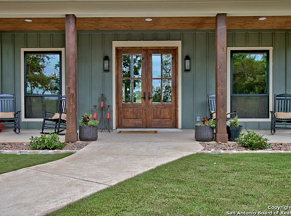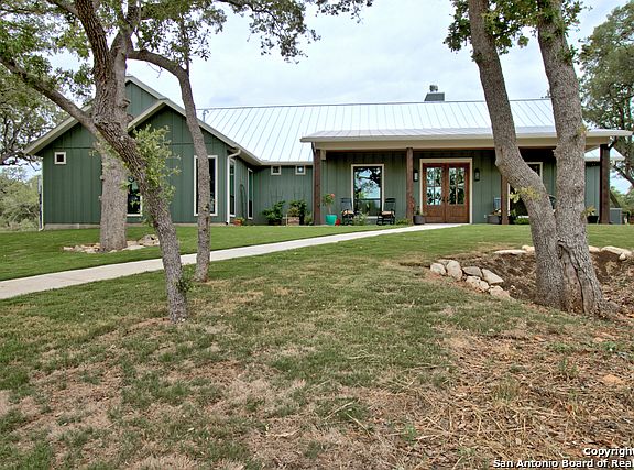 Immaculate 3608 sq ft new construction custom home on 10+ acres of UNRESTRICTED & AG EXEMPT land. Convenient location. 4 bed, 3 full bath, 2 car garage, stained concrete, wood, and carpet flooring. 2nd floor game room & office. Metal roof, outdoor fireplace, sprinkler system, 2 water wells, water softener, shooting range. Walk in attic with spray foam insulation. 2306 sq ft 4/2 manufactured home that can be used as 2nd living quarters or office space. 1500 sq ft shop with guest quarters. All appliances. 2 YEAR HOME WARRANTY. New Asphalt driveway. Smithson Valley schools. Platted as 2 separate lots with 2 electric services. Minutes from Blanco Rd.