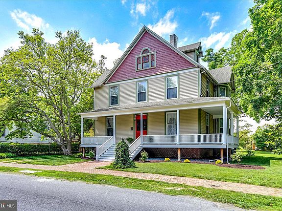 Turn of the century jewel. Beauchamp House c. 1900. Perfectly positioned on Prince William Street near the Teackle Mansion and other historic properties. . Home has been lovingly restored and updated for today's lifestyle. Rooms are spacious and light filled. Floors are refinished hardwood. Major updates completed include new siding and decorative fish scale shingles. Window sashes were built out to keep historic look. Blown in insulation, new plumbing and updated electric added. Front porch was rebuilt. Storm windows added. Interior freshly painted in past 5 years with drywall in some rooms over plaster. Third floor plumbed for an additional bath has heating and cooling. Eat-in kitchen has new granite surfaces, gas cook top, microwave and double ovens plus a walk in pantry. Home has four fireplaces that once burned coal. They would need to be reworked to burn gas or wood. Driveway with brick was added with off street parking. An outbuilding workshop has power and water. Grounds are lush grass with perennial flowers and mature trees. Walk ways on Prince William Street are paved with brick. Most of the nearby homes and properties date from the 1700 and 1800s'. Imagine relaxing on your inviting front porch of this magnificent home. Home has had a great many upgrades but is being sold AS IS. Active subject to release of contract.
