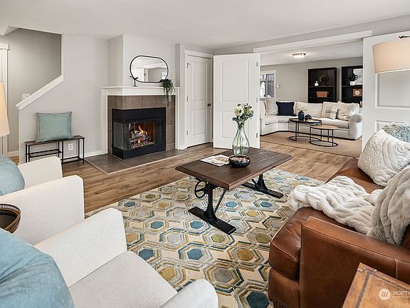 A Rare Opportunity! Stunning townhome in desirable Woodridge is picture perfect & beautifully updated with no shared walls! Expansive main level is the heart of the home with an open & versatile floor plan. Generous great room with cozy fireplace opens to large bonus room. Chef’s kitchen has upscale features: SS appliances, designer-tile backsplash, large island & dining area. A stylish, sunlit interior with abundant windows, stone surfaces & laminate hardwood-style flooring thruout. Primary suite has walk-in closet & full bath. 3 Bd+large bonus+den with 4 car garage…Yes, (2) two-car private garages! New exterior paint 2022. No rental cap/Pets welcome. Close to schools, parks & DT Bellevue for easy, convenient living. *$10K Buyer Credit*