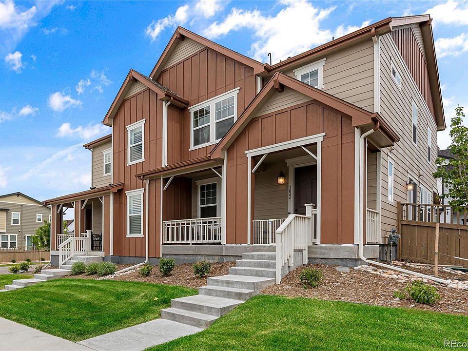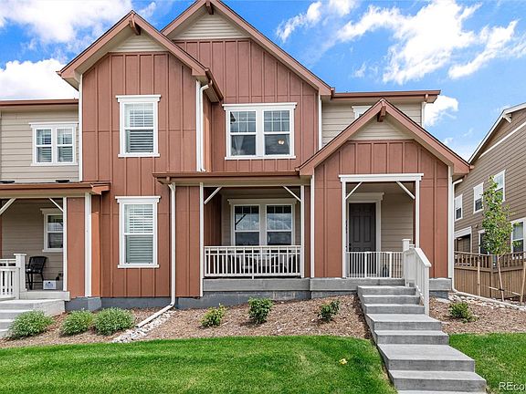 Located The Meadows at Castle Rock this 2021 KB Homes Townhome is oriented between neighborhood parks, trail systems and offers easy access to nearby shops. Upgraded wide plank vinyl flooring expands throughout the main living area which offers an open concept living. The kitchen boasts upgraded hexagonal white backsplash, white cabinetry paired with black hardware, pendant lighting, upgraded refrigerator and large pantry. Off the kitchen is the living room and dining room space which pulls in a lot of natural lighting. The main level is complete with a powder bathroom and front room office which would also function well as a playroom, formal family room or additional dining room. The large primary bedroom is located upstairs and offers a walk-in closet as well as a beautiful private bath complete with a dual vanity, walk in shower & additional oversized linen closet. The two additional bedrooms are also located upstairs, along with the additional full bathroom. The bonus loft completes the upstairs and is perfect for additional entertainment space, playroom or office space! Off the dining room enjoy the low maintenance yard which is accented by a patio space and turf! To round off “low maintenance living” the HOA takes care of the up keep of the front yard. The Meadows in Castle Rock has a lot to offer from the expansive parks & trails to the Grange Cultural Arts Center & Pool and also offers easy highway access. The Outlets at Castle Rock as well as Downtown Castle Rock are also just minutes away! Information provided herein is from sources deemed reliable but not guaranteed and is provided without the intention that any buyer rely upon it. Listing Broker takes no responsibility for its accuracy and all information must be independently verified by buyers.