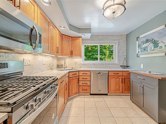 This stunning ranch is situated in a prime location, offering convenience at its best. Step inside and be greeted by a spacious and inviting living room with a level entry. The gourmet kitchen is beautifully designed, perfect for culinary enthusiasts. The dining room seamlessly opens onto the deck, creating a seamless indoor-outdoor flow. The master suite boasts a renovated master bathroom, providing a luxurious retreat. Additionally, there are two generously sized bedrooms and an updated hall bath. This house is ready for you to move in and make it your own. The lower level is equally delightful, featuring a newly finished basement that offers ample space for both office and entertainment areas. The convenient laundry room and half bathroom add to the overall appeal of this charming home.