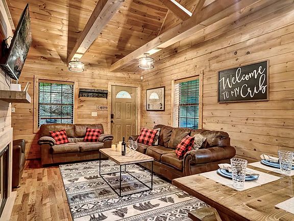 Back on the market due to no fault of the seller/house! Great location, only 7 minutes to The Parkway! This newly renovated cabin is TURN KEY. Fantastic floor plan features bonus room (4th bedroom with King bed), open concept with king bed on the main, walk out basement with 2 bedrooms (king bed in each) and game room with Q/Q bunks. This level has an outside entrance too and parking! Kitchen features open concept, modern appliances, and has everything your guests need for enjoying a meal together. Gorgeous deck wraps of the way around with ample seating to enjoy the crisp mountain air, entertaining, grilling, or enjoying the hot tub. No HOA fees, private well/septic.