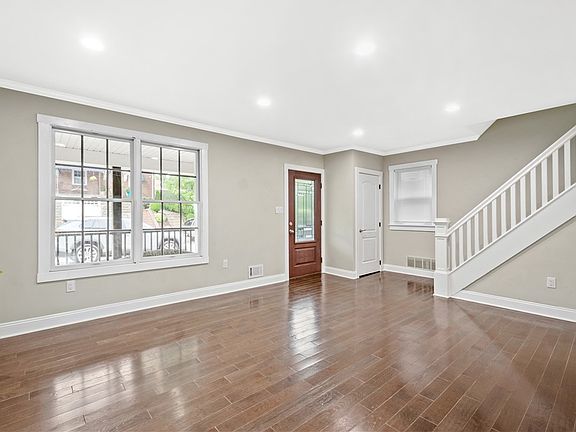 WOW! Beautifully Renovated House is Ready To Be Your Home. Welcoming Front Porch Greets You As You Approach This Level Entry Spacious Home. Living Room is Accented By A Stone Wall, Gleaming Hardwood Floors and Recessed Lighting. Hardwood Floors Continue Through The Well Appointed, Light and Bright Kitchen That Features Recessed Lighting, Granite Counter Tops, Stainless Steel Appliances, Prep Sink and Access to The Rear Private Deck! Perfect for Morning Coffee or Entertaining! 2nd Floor Hosts 3 Nice Sized Bedrooms and a Gorgeous Main Bath with Separate Sink Areas. Finished Attic Is A Great Space For a Home Office or 4th Bedroom. Let The Fun And Games Begin In The Lower Level Game Room With Another Full Bath. French Doors Lead to The Rear Multi-Level Trex Deck and Low Maintenance Yard Rear Off Street Parking.