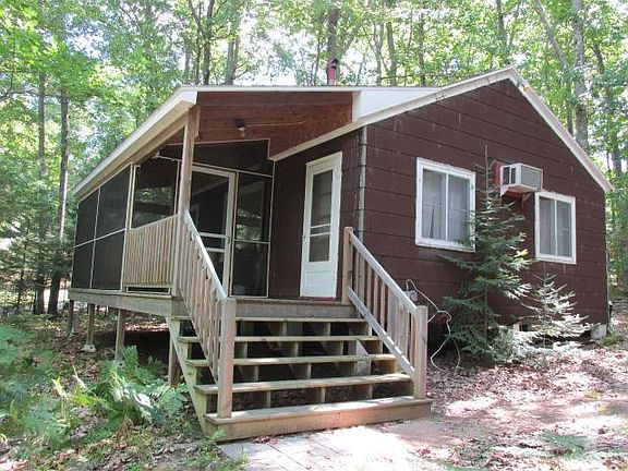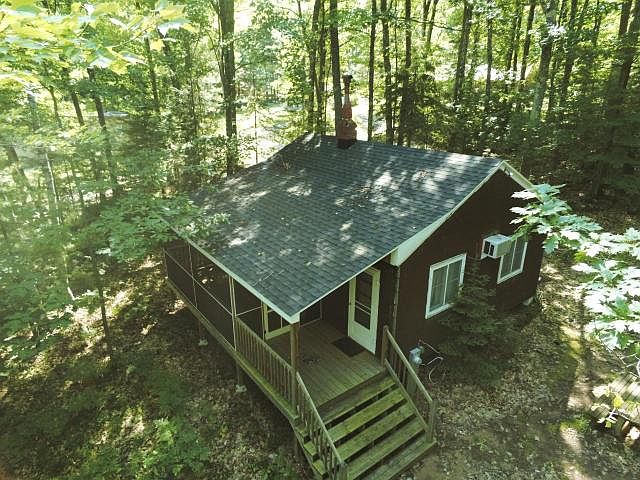 This affordable 3-season cottage on 240 acre Fifth Lake, part of the Moen Chain of Lakes, has been owned by the same family for more than 70 years. The cabin has an open kitchen, dining and living room area along with two bedrooms and a half bath. A newer addition to the cabin is the lakeside 8x24 covered deck with an 8x16 screened area. There is an outdoor shower stall located off the back of the cottage. The approach to the lake is gradual and offers 100 feet of sand & gravel frontage. Fifth Lake and the Moen Chain provide wonderful opportunities for fishing, swimming and boating. This is a nicely wooded and private lot with minimal lake activity at the end of the chain.
