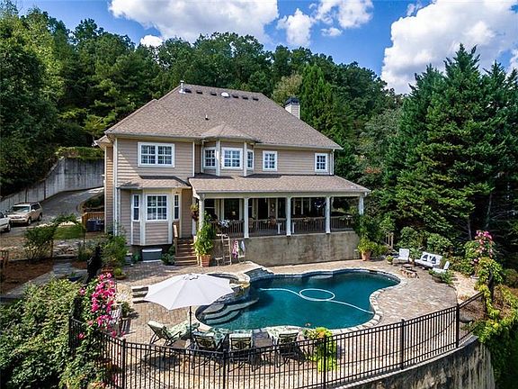 WOW! Stunning 5 Bedroom Lakefront home on Knickerbocker. Chattahoochee Country Club w/in 2 miles. Welcoming front porch with antique Egyptian front door. Upgrades and architectural details throughout. Gleaming Australian cypress wood floors. Open floor plan. Amazing views from the Family Room with wall of windows and stacked stone fireplace. Incredible views- you'll feel like you are on vacation year-round! Massive gourmet Kitchen features granite counters, stainless appliances, gorgeous wood cabinets and huge island. Expansive Master Suite with door to covered patio.