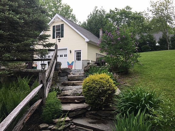 This is a very comfortable and energy efficient home, a great condo alternative or vacation home. Nestled in the Batten Kill River Valley, it is convenient to Manchester, Bennington and an hour away from Albany and Saratoga, NY. It is a walk to the river for boating, tubing, swimming and fishing. It is a short walk to The Wayside Country Store, the former home of Norman Rockwell and a famous covered bridge. It is three miles from the picturesque town of Arlington. Outside the home is landscaped with perennial gardens, rock walls, steps and patio. There is a great detached garage in the back which has a wood stove and a finished room above for a studio or man cave. Enjoy the covered porch and built in barbecue for grilling on summer nights. There is also a potting and storage shed. Inside you will be amazed at the fine details and spaciousness of this three bedroom home. There are two full baths and the master has a shower and jetted tub. Enjoy the pellet stove in the library/meditation space. The living areas are open concept. There are ample closets and a large pantry and laundry area. There is a bonus "dog house" under the kitchen island that children may enjoy and a doggie door to the back porch and fenced in garden.