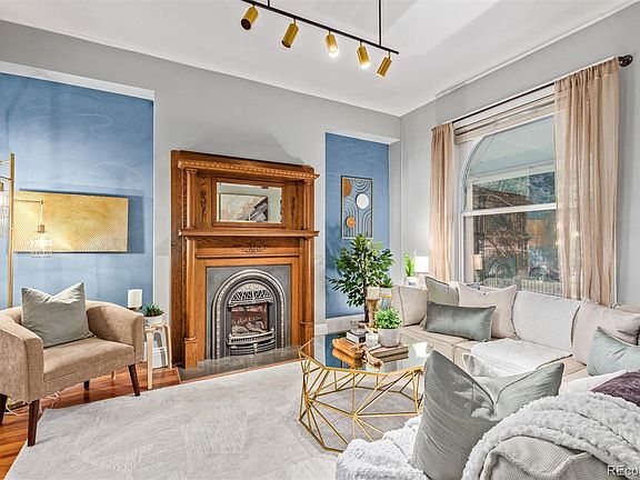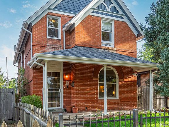 This absolutely stunning Victorian home is just a short stroll from Jefferson Park, Sloan’s Lake, Highland Square, and more. Meticulously maintained, including fresh exterior paint, masonry restoration, upstairs carpeting, and newly refinished wood flooring. It features modern updates while preserving its original charm and character. Upon entering, you'll be greeted by high ceilings and an ornate staircase. The cozy living room, complete with a fireplace, offers a perfect spot to unwind. The spacious formal dining area flows seamlessly into the kitchen, making this home ideal for gatherings and entertaining. The updated kitchen boasts stainless steel appliances, granite countertops, ample cabinet space, and room for a kitchen table. Upstairs, you'll find three bedrooms and an office nook. The primary bedroom includes a generous walk-in closet with built-ins. The stylishly remodeled bathroom adds a touch of elegance. The beautifully landscaped yard provides space for entertaining and has ten garden beds with a fully automated smart sprinkler system, making this the urban gardener's paradise! The oversized 2-car detached garage offers plenty of storage. Solar panels, which are owned and will transfer with the property, ensure green energy and reduced utility bills. New furnace and A/C installed in 2020. This home is perfectly situated with easy access to shopping, public transportation, and bike paths.