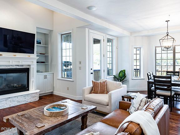 This stunning mountain modern downhill end unit Townhome boasts a 3-bedroom, 4-bathroom & is located in Canyon Links, Jeremy Ranch. This unit offers impressive views & ample natural light on all three levels. Due to the unique location in the community, this unit provides more privacy with expanded decks, patios, and a back and side yard. 2,587 sq ft of unparalleled beauty, the main level features a cozy family room with fireplace - upgraded kitchen, and dining area, giving access to the outdoor living area. Relax in the private master suite featuring a walk-in closet and luxury bath with a soaking tub and dual vanities. The upper level holds an additional bedroom with an ensuite bath & laundry room. The walkout lower level feels open and bright, with ample room for entertaining & guests, featuring a spacious rec room centered around a fireplace, access to a lower patio with a hot tub, and an additional bedroom or den. This unit was expanded during the original construction to make the main level and lower level larger. The lower level bedroom was also made larger, making this a truly one-of-a-kind unit. Sellers have updated the unit from top to bottom, making this unit ready to be called home.