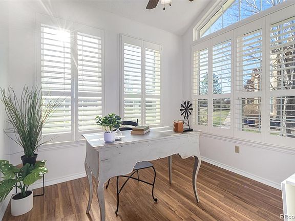 Nestled in an ideal location, this ground floor end unit offers a serene backdrop overlooking the lush greenery of the golf course. Ample parking is available, complemented by a convenient 1-car attached garage. Featuring 2 bedrooms and 2 baths, the primary bedroom boasts dual spacious closets, an ensuite full bathroom, and direct access to the inviting outdoor patio. Revel in the warmth of wood flooring throughout, with plush carpeting enhancing comfort in each bedroom. A designated office space ensures ample room for personal affairs and an added perk is that this unit comes complete with an in-unit washer and dryer. Just moments away from charming downtown Littleton or quick access to the mountains for a day hike, it's entirely up to you. You even have the luxury of choice right at home - whether it's lounging by the community pool or hitting the greens of the golf course! Welcome home! HOA dues cover snow removal, sewer, trash, water plus the clubhouse and outdoor pool amenities.