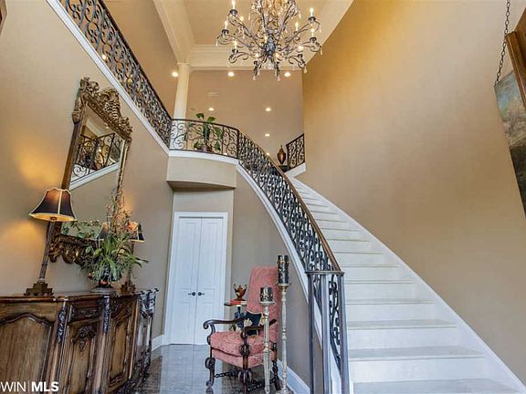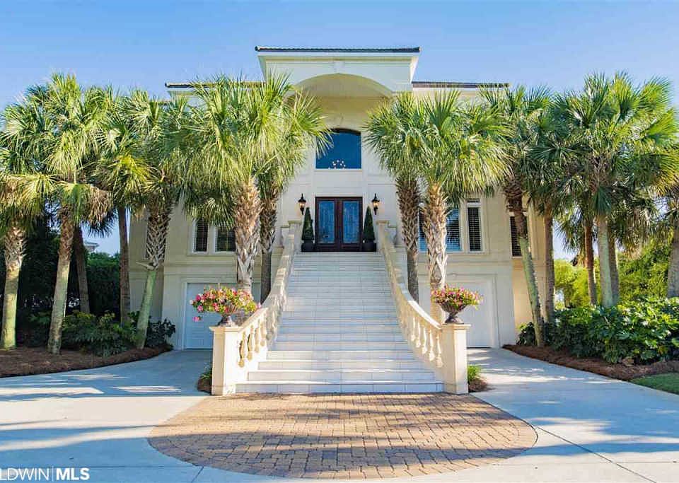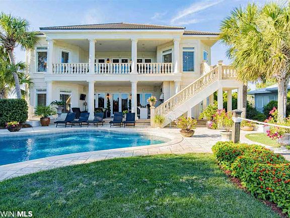 Extraordinary custom home offers unparalleled craftsmanship and exceptional amenities. This Mediterranean design is truly remarkable inside and out. This luxurious dream home is located on Ono Island. The grand entryway with sweeping staircase draws you into a voluminous layout to the main 3rd level. This main floor offers a formal dining room, exquisite crystal chandeliers, breakfast room, high-end gourment kitchen with granite counters and wet bar. Spend much time entertaining in the den/family room with fireplace that overflows to a terrace overlooking the gunite pool, rock fall and hot tub all surrounded by professional landscape. The master suite is the ultimate retreat complete with travertine shower and separate jacuzzi tub. Also at your convenience located on this 3rd floor is the study and private laundry room. The 2nd floor houses 4 bedrooms, 3 baths, a breakfast room, another custom kitchen with granite counters, private laundry room for guests. The den/family room spills out to the generous, enchanting outdoor kitchen and living space around the pool. The 1st floor level is the spacious, rare basement garage area with elevator to transport from floor to floor. The home is situated directly on Old River atop a 20-foot dune with its own private 40 X 40 boat dock that will accommodate a 40-foot boat and a boat lift for a 20-foot boat. Living is easy in this "Fortified" silver, resort style, impressive, generously spacious residence with stunning views. Please go to documents to view more details. Please view virtual Tour Link. Owner is a licensed Alabama real estate agent. Shown by appointment only.