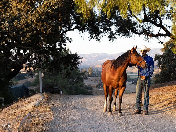 Welcome to Ballard Hill Ranch, a unique equestrian property nestled in the heart of Los Olivos. Bask in panoramic views of the Santa Ynez Mountains while watching your horses graze in expansive green pastures. This exceptional horse property boasts a +/- 20,000-square-foot indoor covered riding arena, which provides stunning views of the vineyards and mountains. Spacious enough for an 8-jump course, the arena is seamlessly attached to a stable with 24 stalls, two spacious tack rooms, two restrooms, a wash rack, and a barn loft ripe for renovation. The adjacent mare motel barn houses 17 stalls with optional in-and-out access.Two graded building sites, offering breathtaking views, await the Los Olivos farmhouse of your dreams. A quaint +/- 1,400-square-foot modular residence graces the bluff, featuring an inviting porch/deck that presents a vast panorama of the Santa Ynez Valley. Constructed by Gene Suiter, whose lineage includes championship horse cutter Joe Suiter, the iconic red barn at the ranch's base is paired with a large cutting arena -- graded and awaiting updated footing. A third arena near the modular residence has been innovatively transformed into a contemporary camping site beneath the stars, complete with spacious eco-tent yurts.With its coveted AG-II zoning on +/- 19.26 acres, the ranch offers immense potential, including vineyard development within the Ballard Canyon AVA. Don't miss this unparalleled opportunity in the heart of Los Olivos.