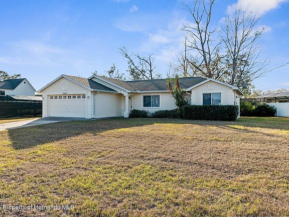 Welcome to this charming 3-bedroom, 2-bathroom home offering 1,266 square feet of comfortable living space on a spacious 0.29-acre lot. Featuring an open-concept floorplan with split bedrooms, this home provides both functionality and privacy. You'll love the fact that there's no carpet throughout, ensuring an easy-to-maintain and modern appeal. With a 2-car garage and a large private backyard, there's plenty of space for storage, entertaining, and outdoor activities. Located less than a mile from Anderson Snow Park and Sports Complex as well as the Suncoast Parkway, this property is incredibly convenient for commuters and families alike. Dining, shopping, and entertainment options are all just minutes away, making this home ideal for someone seeking both convenience and a peaceful residential atmosphere. Best of all, there's no HOA or deed restrictions, offering unparalleled flexibility for homeowners or investors looking to add to their rental portfolio. Don't miss your chance to make this home yours! Whether you're a first-time buyer, looking for a great family home, or a savvy investor, this property checks all the boxes. Schedule your showing today!