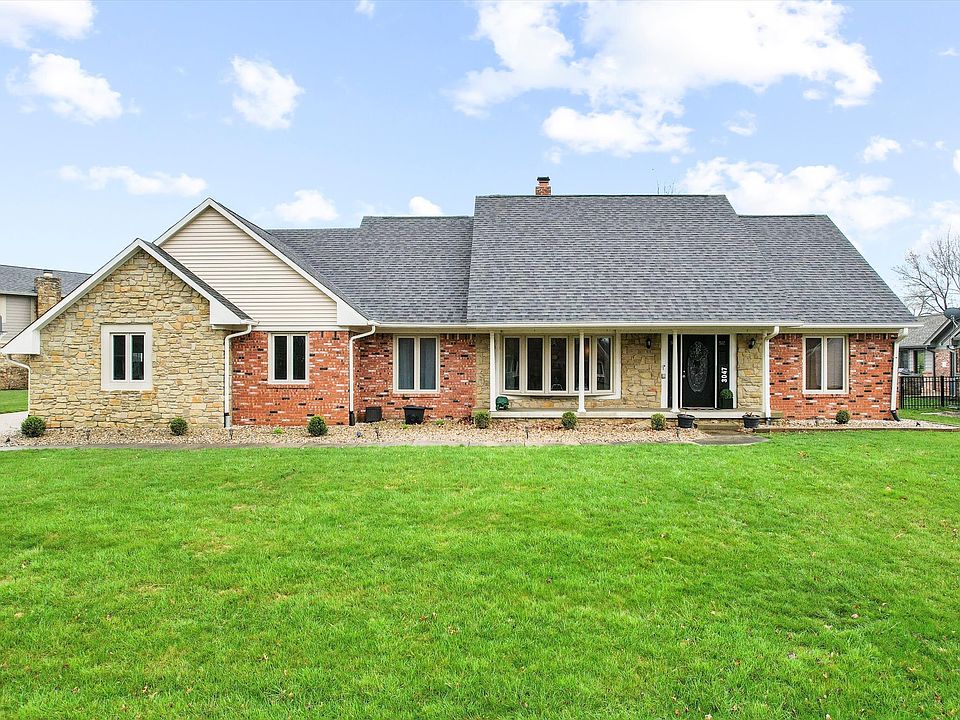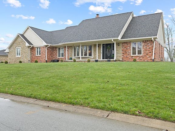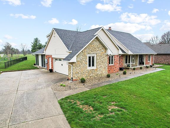 3,186 sf, 4 bedroom, 2 full baths and a 2 half baths, 2 car garage w/ a bay for a golf cart on the 18th green on Dye's Walk Golf Course. Updates include: water line to house, landscaping, garage door and opener, vinyl plank flooring, carpet, gym floor, patio door, roof, rebuilt chimney and so much more. 22x20 screened patio w/ electric fireplace, heater in ceiling, wired for tv, lighting and overlooking the course. 31x25 exposed aggregate patio w/ gas firepit and wired for a hot tub. Main level master w/ double vanity, walk in closet and tub/shower. Bonus room w/ its own staircase and a wet bar. 3 large bedrooms upstairs w/ walk in closets.