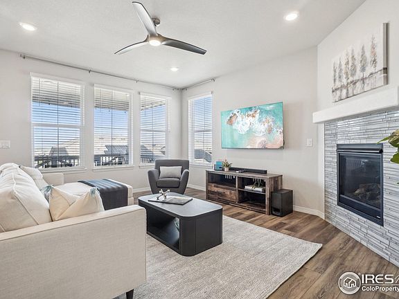 Luxury meets lifestyle in this beautifully upgraded ranch home, perfectly positioned on a quiet cul-de-sac in the coveted Anthem Highlands neighborhood. Enjoy panoramic mountain views -including Longs Peak-and direct access to miles of scenic trails just steps from your door. This immaculate home offers a bright, open floor plan with wide-plank LVP flooring throughout the main level, stairs and basement. The living room features a custom-tiled gas fireplace and flows into a stunning kitchen with a large island, gas range, stainless steel appliances, designer backsplash, pendant lighting, and a butler's pantry with soft-close cabinetry. The primary suite includes a spacious walk-in closet and a luxurious five-piece bath, while two additional main-level bedrooms offer flexibility for family, guests or a home office. The main level steps out to a covered deck that captures unforgettable Colorado mountain sunsets. The fully fenced backyard includes a custom paver patio, perfect for entertaining. The finished walkout basement lives like a second home, featuring a bedroom, dedicated workout room or office, two expansive recreation spaces, a sunroom, and a well-appointed mini kitchen with wine fridge, second refrigerator, stylish backsplash, wood accent shelves, solid surface counters, and a 3 piece bathroom with European frameless glass shower. The home also features a spacious two-car garage and third garage or gear bay, ceiling fans in bedrooms and living areas, tall interior doors and high ceilings on both levels adding to both function and style. Anthem Highlands offers unmatched amenities, including a 30,000 sq ft recreation center, outdoor pool, fitness center, tennis courts, and access to over 48 miles of trails. Anthem amenities are included in HOA dues, no additional fees or memberships required. Just minutes from Thunder Vista K-8, parks, and local conveniences, this is Colorado living at its finest. Don't miss the virtual tour.