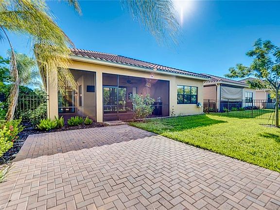 Don't miss out on this perfect 4 bed+den 3.5 bath spacious and open floor plan in the highly desired community of Riverstone in North Naples. The popular Chandon Grande lives very well with the Master Bedroom and 3 other bedrooms all located on the first floor. Wood stairs and flooring on the second level brings a nice over-sized den area with 1/2 bath that can be multi-purposed to an owners preference. Out back is a fenced in area complete with mature private landscaping and an extended paver area for a BBQ area or lounging in the Florida sun! Upgrades to the home include granite/quartz counter tops, high level cabinetry, wood flooring, and various tile packages and designer light fixtures to make it pop! The home also provides front elevation impact windows and storm protection for all other windows. Riverstone is an amazing community, combining value and location into a friendly neighborhood for all. Amenities include a sizable clubhouse, indoor gym, game rooms, resort/lap pool, tennis, fitness, and kids play areas. Make your showing today and live the Naples dream!