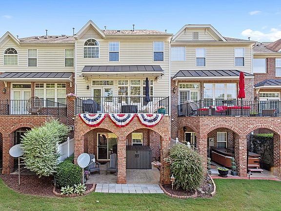 If you want it all - location, views, amenities & space- this is the place for you! Unique brick front townhome in the sought after Wakefield Plantation subdivision. Enjoy the flexibility this home offers while soaking in the gorgeous sunsets on your balcony with updated composite decking, overlooking the golf course. The 2-story foyer leads to the main floor which is light & bright & perfect for entertaining with the oversize dining & living rooms. The galley kitchen maximizes space with ample counters & cabinets, crown molding, beautiful oak hardwoods & recessed lighting. Gas log fireplace with marble surround. The first floor offers a bonus/flex space with a full bath & private patio. Primary ensuite on third level features cathedral ceiling, golf course views, CUSTOM WIC, garden tub & separate walk-in shower. 3rd level also includes two additional bedrooms & one full bath. HOA covers street lights, maint. of grounds/common areas/roof/gutters. Separate membership available for golf & swimming. Neighborhood trails. Close proximity to shops, dining, hwy & Falls Lake. WELCOME HOME!