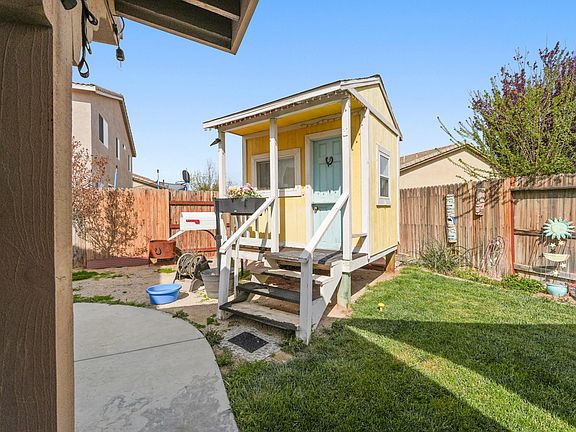 Step outside to your private oasis, where a permitted patio cover and concrete slab patio offer the perfect setting for outdoor entertaining. The backyard is a haven for both relaxation and play, featuring a charming wooden playhouse and two storage sheds.