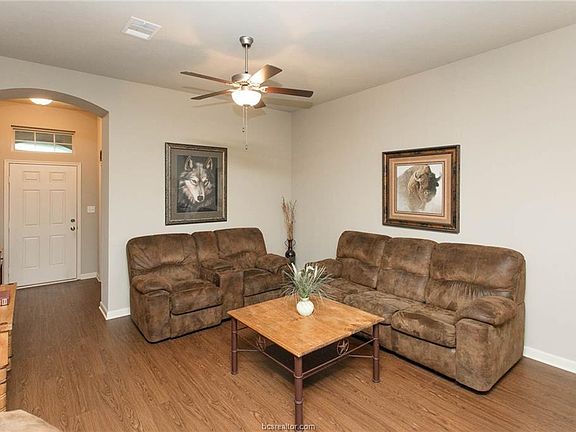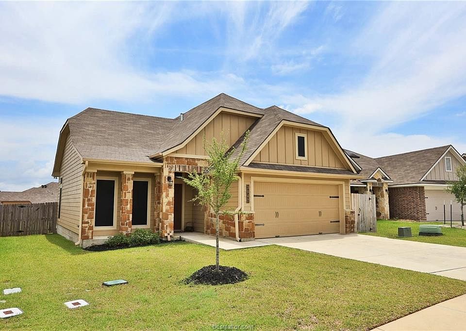 Exceptionally maintained home in the Siena subdivision in Bryan. 3 bed, 2 bath home w/ 2 car garage, lush over-sized lot, privacy fence w/ patio area. The interior offers an open floor plan with gorgeous granite, eating bar, gas range with over-the-range microwave, vinyl plank flooring, & a welcoming flow to the living room & bedrooms. Master suite is complete with matching granite, garden tub, separate shower & a spacious bedroom. Located within walking distance, you/guests can enjoy the HOA maintained community pool & recreation area! Seller improvements: gutters, solar screens, garage door opener (smart home Liftmaster), complete sodding of back yard & additional decking in the attic!