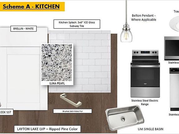 Beautiful Townhome has 9' First Floor Ceilings. 42" Brellin White Kitchen Cabinets, Beautiful Luna Granite Countertops, Ripped Pine Color Luxury Vinyl Plank Flooring. Kitchen back splash is Ice Gloss Subway Tile. Enjoy the Primary Bathroom Shower surrounded by Catch Ice/White Gloss, 4" X 10" tiles with glass door. 2 Pendant lights over kitchen island gives an updated style while entertaining your family and friends. Enjoy Whirlpool Stainless Steel Appliances and single basin kitchen sink.