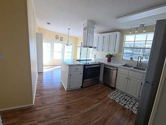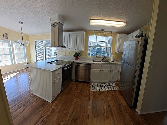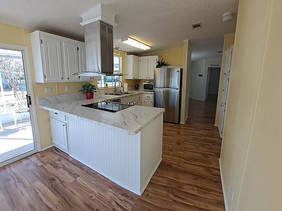 Totally new home with a one-year old roof and AC. Bright eat in kitchen with newer counter tops, sink and faucet. Stainless appliances, washer and Dryer replaced July 2019. Laminate flooring throughout, and with tiled bathrooms. Covered double carport, and front screened Florida Room. This home is ready for you!